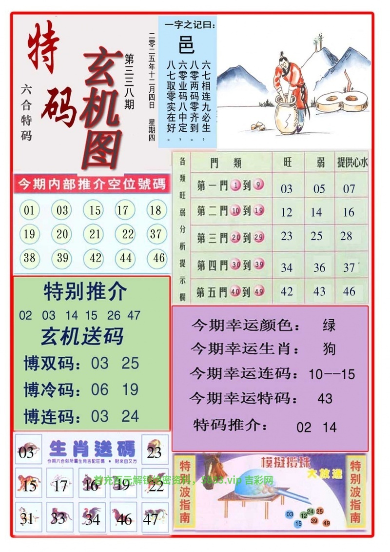 338期:玄机特码 解:图中一语定乾坤可解阴性:鼠龙蛇马狗猪 综合:鼠龙蛇马狗猪 |